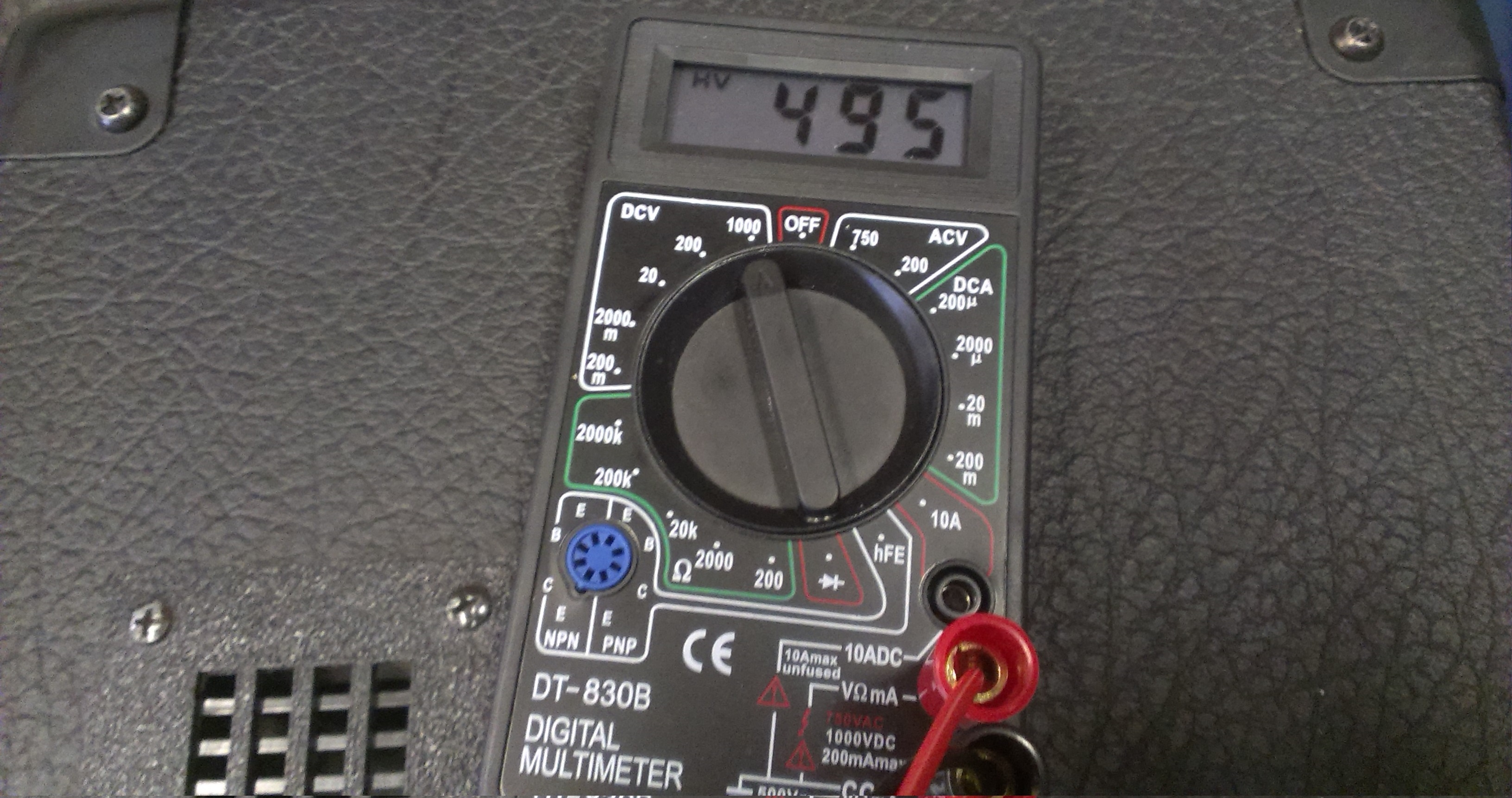 Takže pro úplnost 493V pro 6L6GC a 495V pro EL34. Měřák nastavenej na DCV, takže snad jsem to blbě neměřil přes sondu. Dodávám ještě i pro sichr fotky