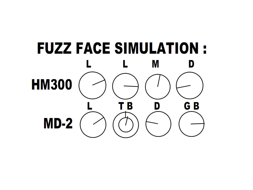 Ve vedlejším tématu se zas naťukla výroba FF, tak jsem zas dostal slinu a vyndal ze šuplíku stavěný dvojitý FF (AC128. GE508) a trochu si zakvílel. Měl jsem venku i jiné krabky a tak jsem zkusil simulaci téhož jinou cestou. A uspěl jsem s Behringer HM300 (BOSS HM-2) a BOSS MD-2 (megadistortion). A ono to fakt znělo skoro stejně. Jestli u toho Behr. bych odchylky našel, tak MD-2 fuzzil dokonale, vč. reakce na stažení volume na kytaře. No, když vidim, za kolik se prodávaji 2 tranzistory a pět odporů v kulatý plechovce, nedá mi, abych (po torstovku) nenabíd dostupnější alternativu. Zde i s nastavením :