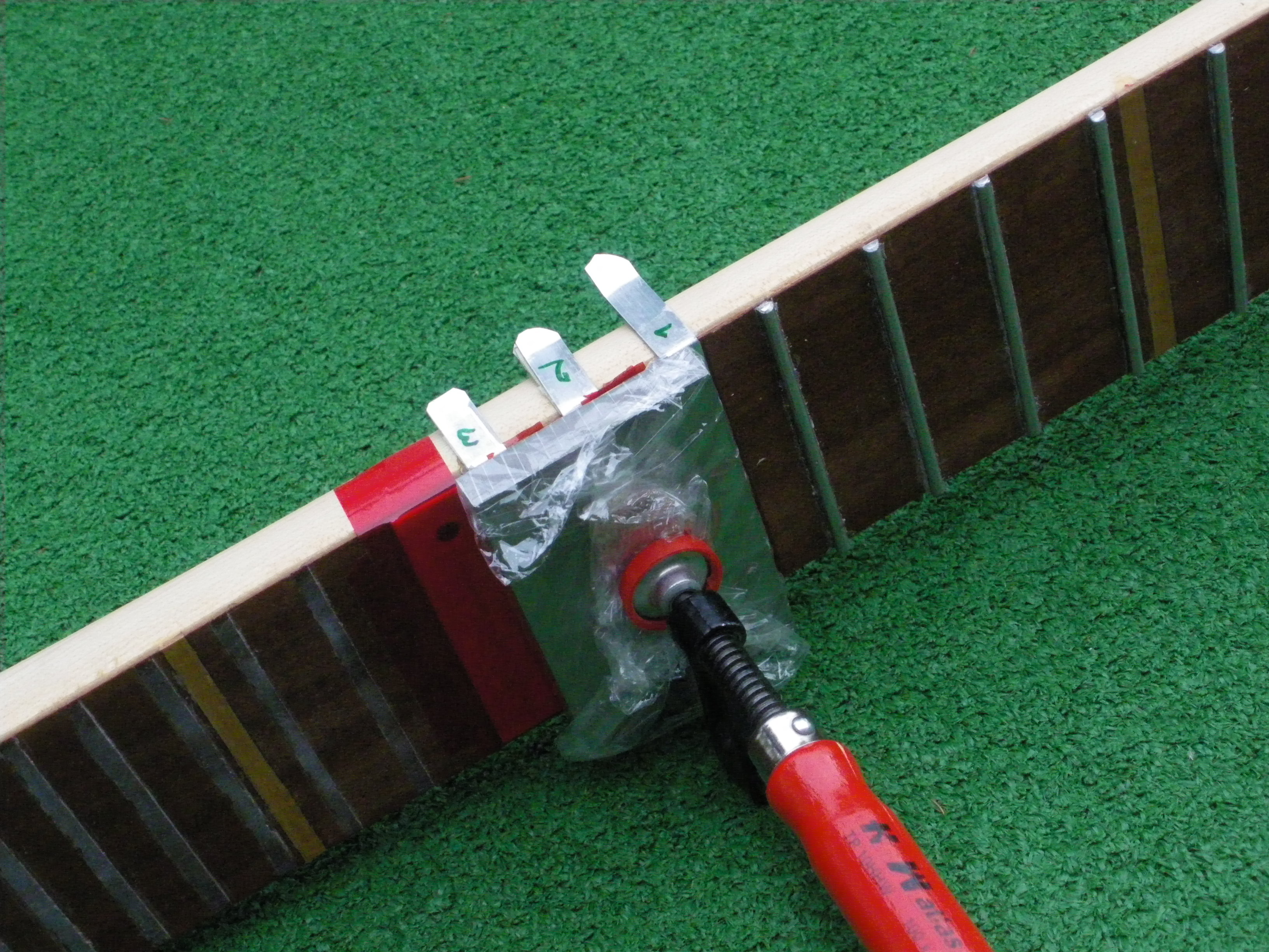 - po vytvrzení jsem napnul výztuhu, ne úplně naplno,