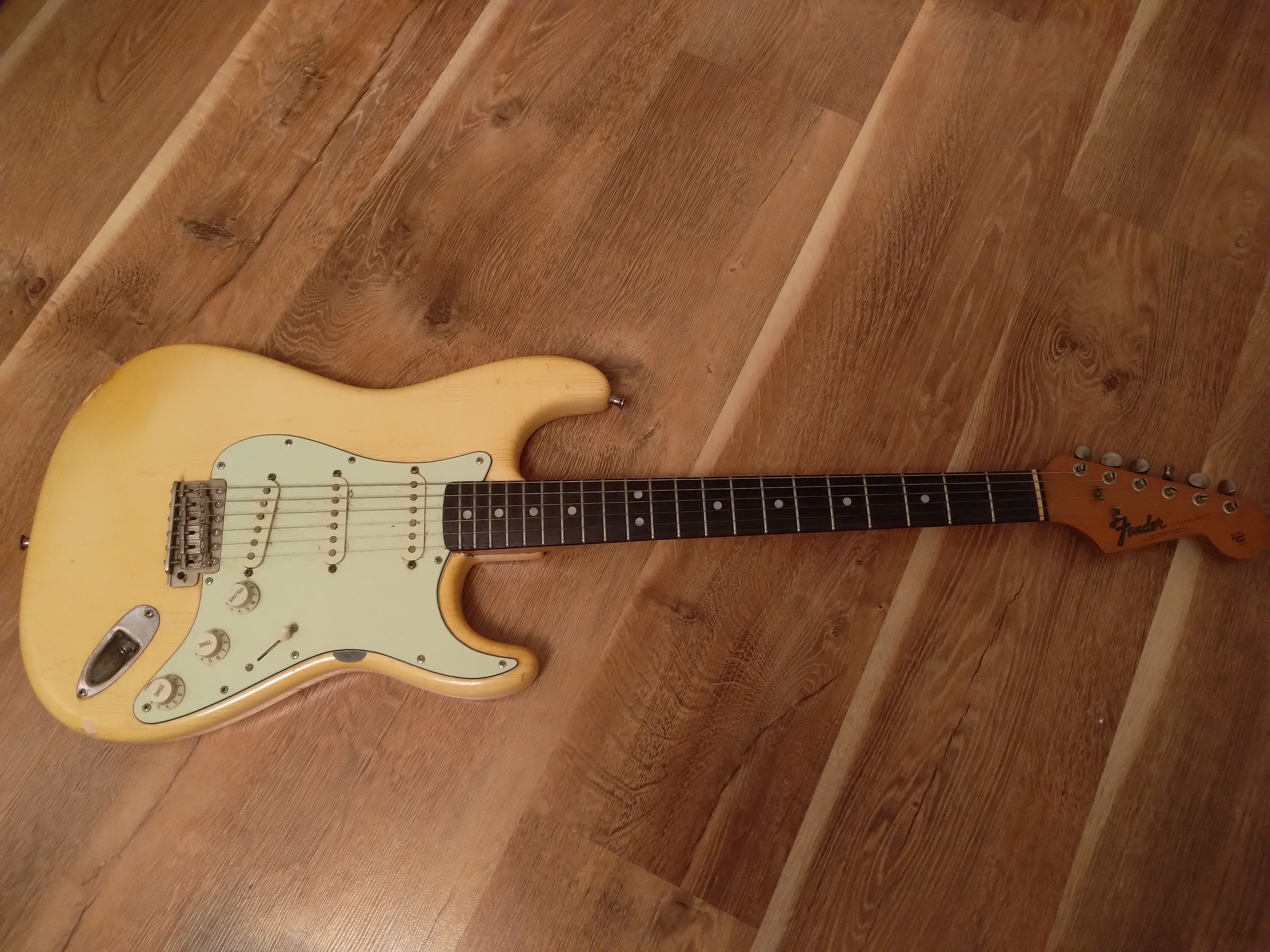 Foto sice neřeší detaily, ale je vysoká pravděpodobnost ba skoro jistota, že se jedná o originál. Dokonce bez zásahů v původním stavu. V tomto případě bych nástroj k prozkoumání nesvěřil jen tak někomu, ale opravdovému znalci, který k podobným skvostům přistupuje s úctou a respektem. Detailnější atributy jsou skryty. Datum výroby bývá na patce krku, který je tedy nutno odšroubovat. Další datování bývá na spodní straně snímačů a v šachtách pro snímače v korpusu. Je tedy nutné sejmout pickguard. Když se k tomu odhodláš, nech celý postup nafotit a uložit, abys nemusel nástroj už vícekrát rozebírat. A jestli nepotřebuješ akutně nové auto nebo rekonstruovat byt - NEPRODÁVAT !!! Cena poroste.