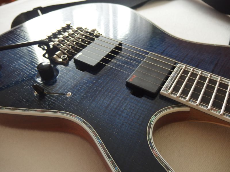 JJ- opravdu super. Zvlášť se mi líbí barva s tím "open pore". Jinak to není můj styl, mít to pevnou kobylku a normální snímače... :D. To vykládání umělou perletí je provedeno parádně, ale mě to přijde přeplácané, nemám takhle hodně zdobené kytary rád a hmatník už vůbec ne.