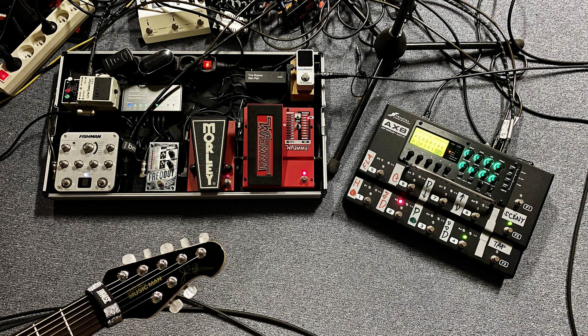 Překutil jsem pedalboard k Axe - díky zmenšenému Badhorsie se pohodlně vešel Freqout.