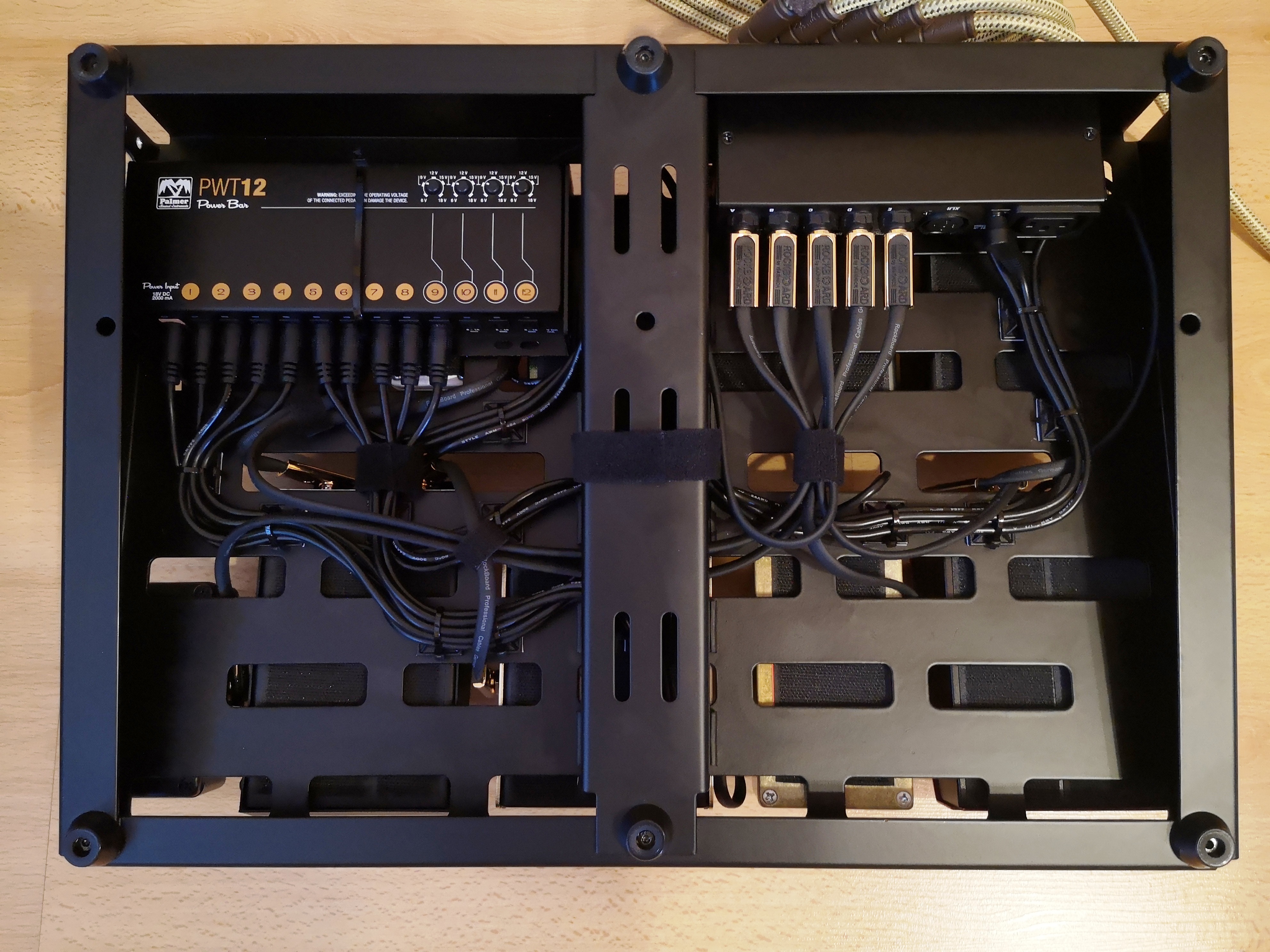 Tak jsem asi po roce předělal komplet pedalboard. Trochu menší velikost a jiný formát než původní a konečně patchbay pro propojky ven.