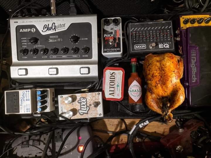 Včerejší doomboard pro nahrávání. Všechno šlapalo jak na drátkách, fullstack nazvučen 2 mikráky, a k tomu navrch odbočka přes Mooer na pěkno přes můj nový dvojitý DIbox s attenuátorem (ten se nakonec hodil, linky byly "too hot") přes který šla i basa. Víc linek, víc Adidas.