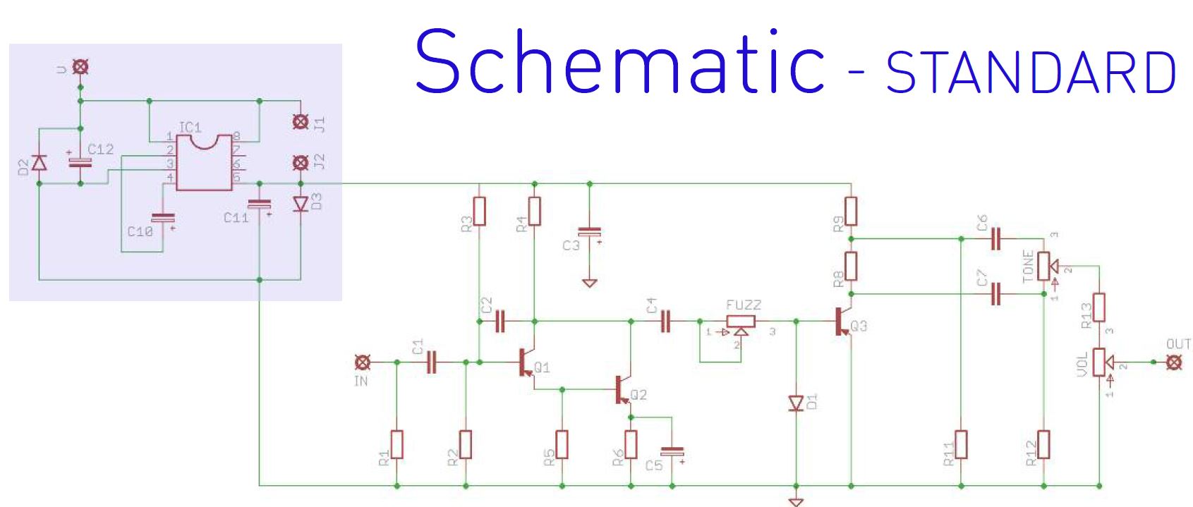 On je tam ten invertor stejne celkem zbytecny, s trochou premysleni se daji zapojit i PNP tranzistory tak, aby byla signalova zem na minus napajeni (jako u vestiny ostatnich efektu).