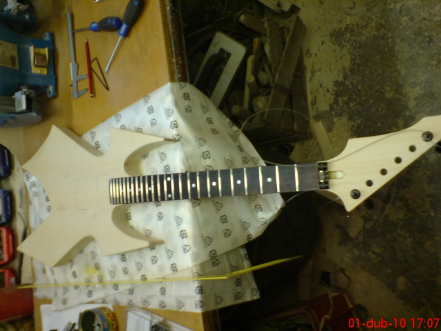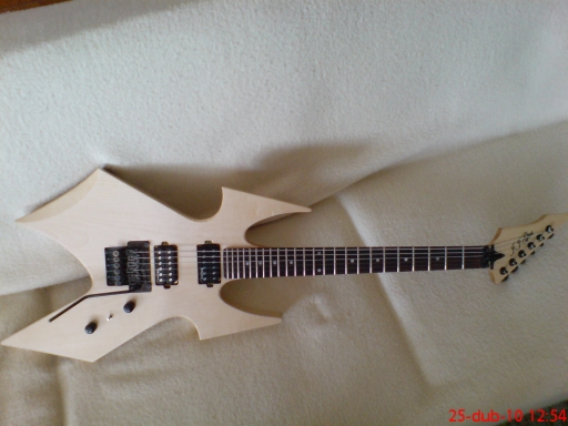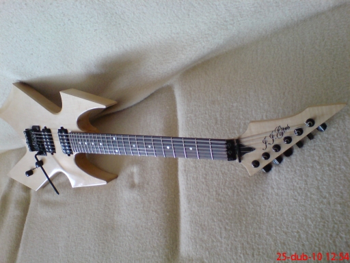 Ten krk mám ze starý kytary, bylo na něm B.C.Rich licensed. To jsem obrousil. Bohužel jsem se probrousil až pod dýhu, takže jsem to musel znova odýhovat. Jinak ta kytara byla překližková a myslím, že to byl asi taky nějakej domamont. Ten krk má menzuru 630 mm. Nejsem si uplně jistej jestli B.C.Rich vůbec někdy tenhle design hlavy a tuhle menzuru dělal, když jsem to zkoušel Googlit tak jsem nic nenašel.Mastr píše:Paráda! kde jsi sehnal ten čupr krk? Jo a klidně bych to nechal přírodní vypadá to moc hezky