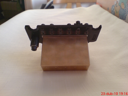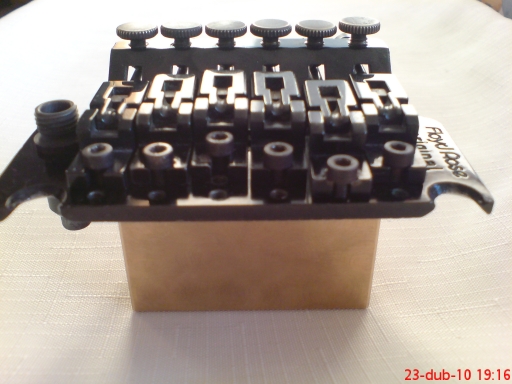 Tak už to funguje a hraje jak má. Přidávám pár fotek hotový kytary a tremola Floyd Rose s mohutným sustain blokem z mosazi, který mi vyrobil uživatel NOOKA. Kytara hraje skvěle a má parádní sustain.