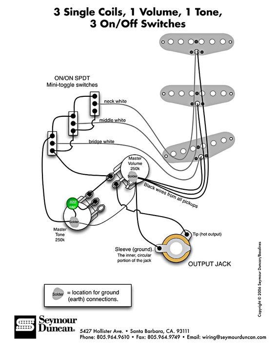 Takže spojím ta dvě schémata od SD, akorát DiMarzio Area má zelený-zem; červený-živý a místo humbuckeru dám ten rozpínací obvod. Ale pořád si myslím, že z toho přepínání cívek JB musím ještě vytáhnout zem. Je to tak? Ten jeden drát je hot/živý, tak je třeba nějak uzavřít obvod, ne?