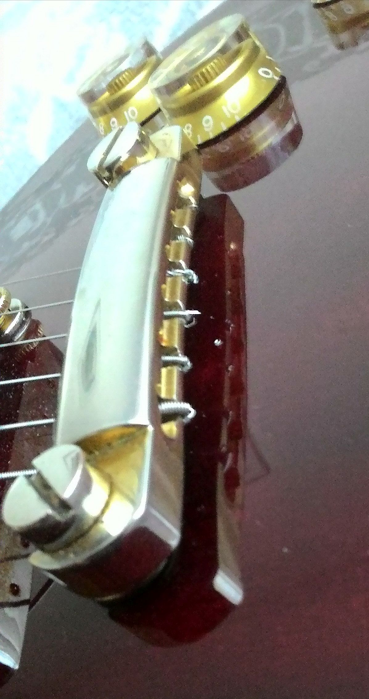 Mám dotaz k praskání strun, asi především na lespaulisty. Používám celkem 3 LP, na dvou je zalomení strun za kobylkou poměrně příkré, na LP Vintage bylo ale celkem minimální. Myslím si, že i v důsledku toho byl zvuk chudý na výšky a struny působily na dohmat příliš měkce, blátivě, úplně jinak než na originál Gibsonu. Někomu to třeba vyhovuje, i Bonamassa používá topwrap pro temnější zvuk a snadnější bending. Já jsem potřeboval přesný opak, tak jsem zkusil bottomwrap, viz foto. Funguje to prima, přibylo výšek a feeling je jak má být. Jenom by mě zajímalo, pokud tuhle vychytávku někdo používáte, jak je to s praskáním strun - to zalomení za struníkem je docela brutální... Můžu s tím vylézt na podium? Google o tom mlčí. Díky za vaše zkušenosti.