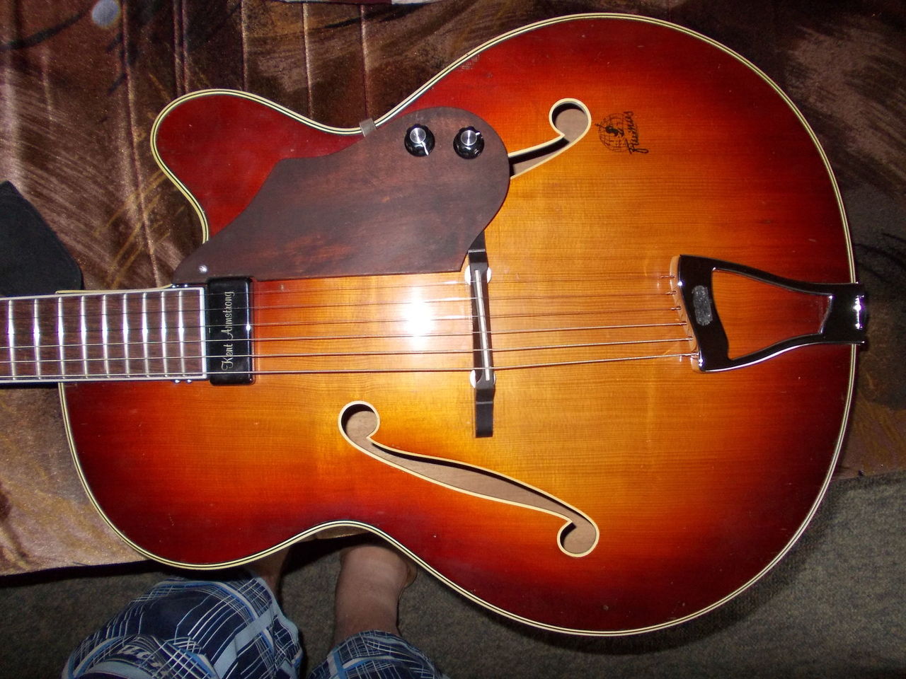 Prý je to masiv, ale nemám kde přesvědčit, popis ve Framus muzeu není úplně jednoznačný. Snímač je K.Armstrong.