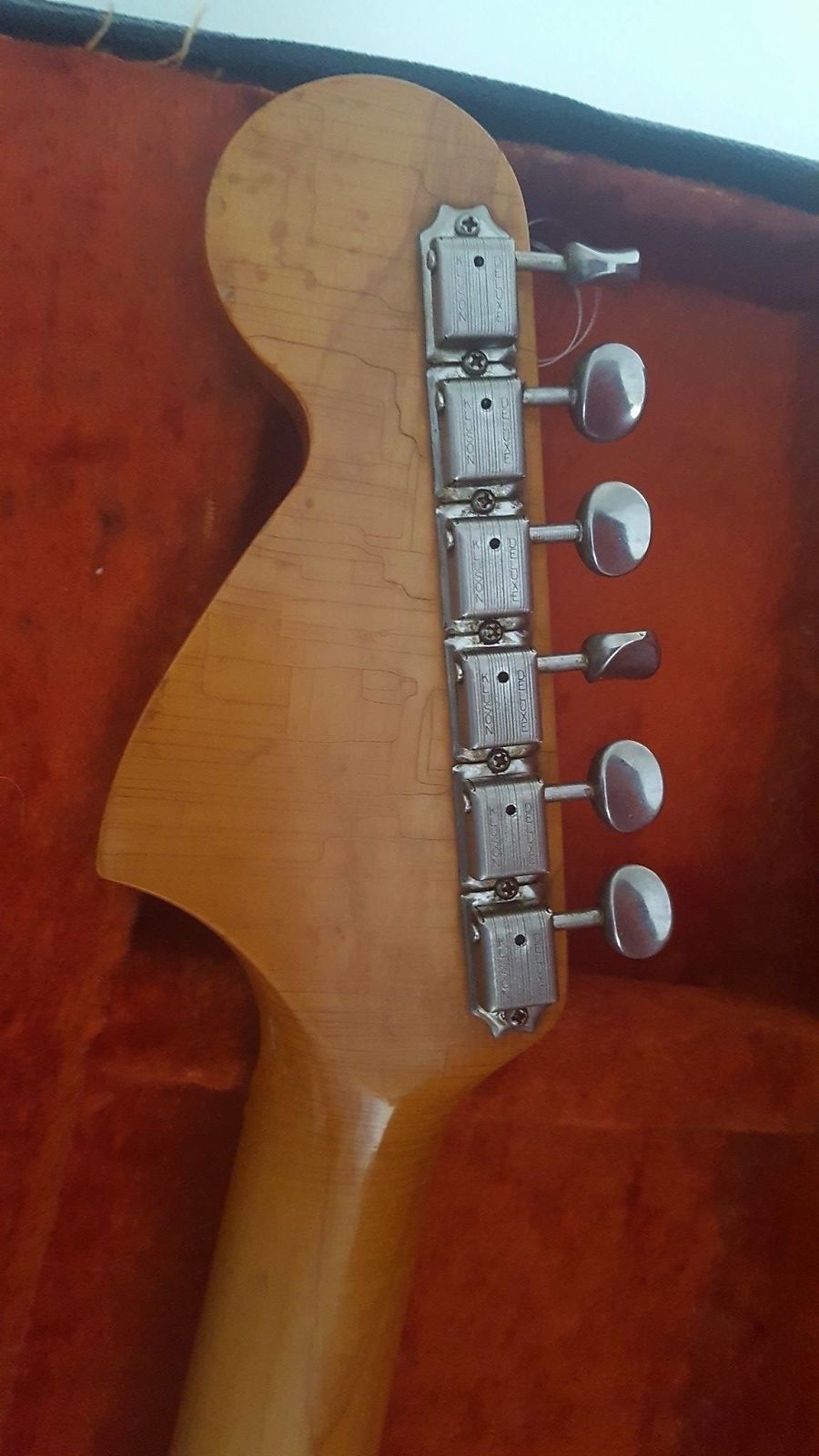 - sunburst . Tuners ještě staré. Snímače asi nepůvodní, ale také z odpovídajícího roku, velmi lehký - 3,3kg, krk C, radši bych U, ale jinak láska na první pohled.