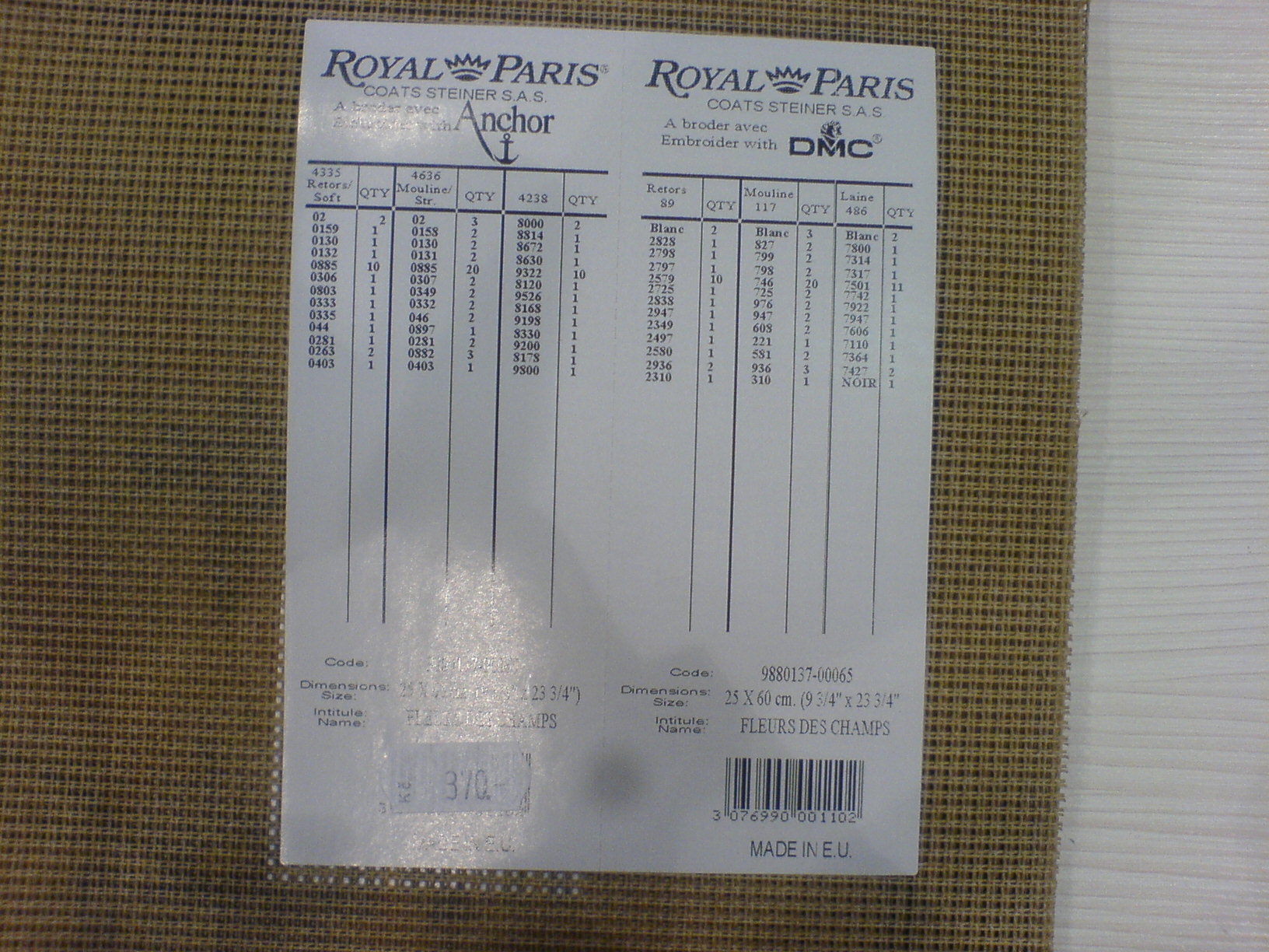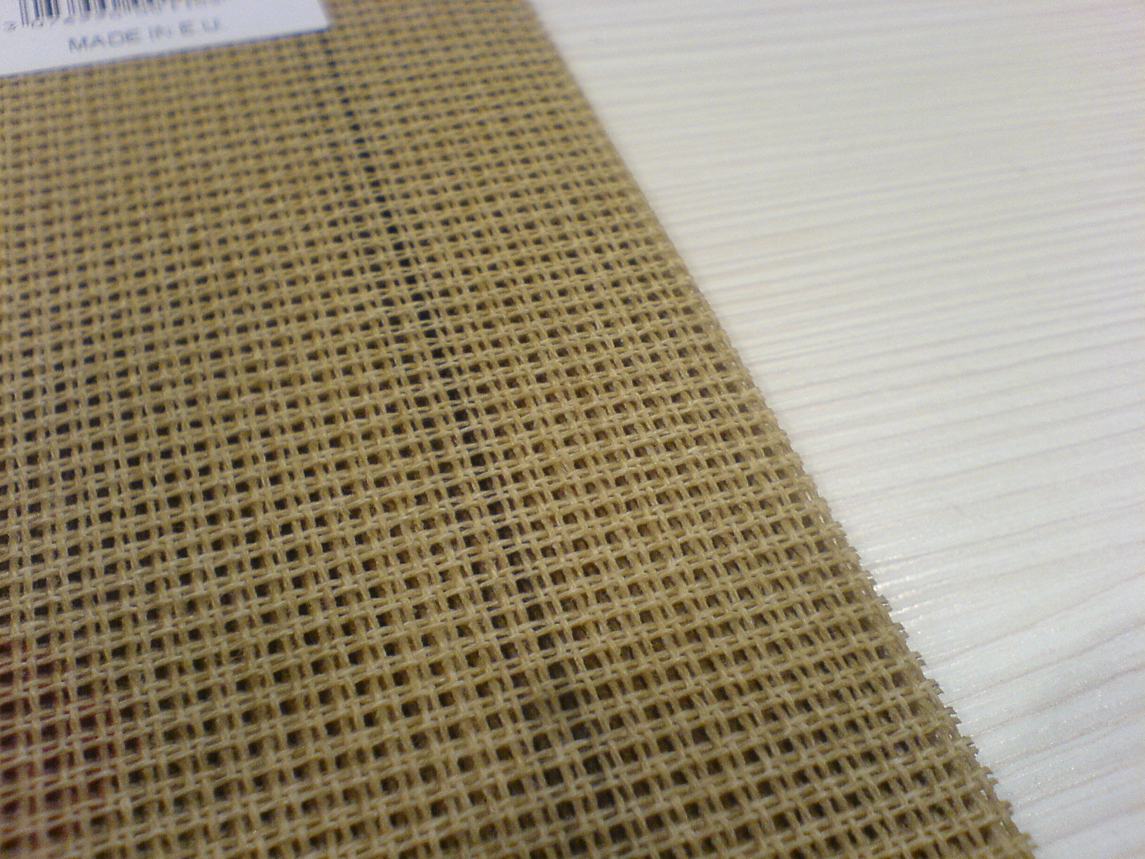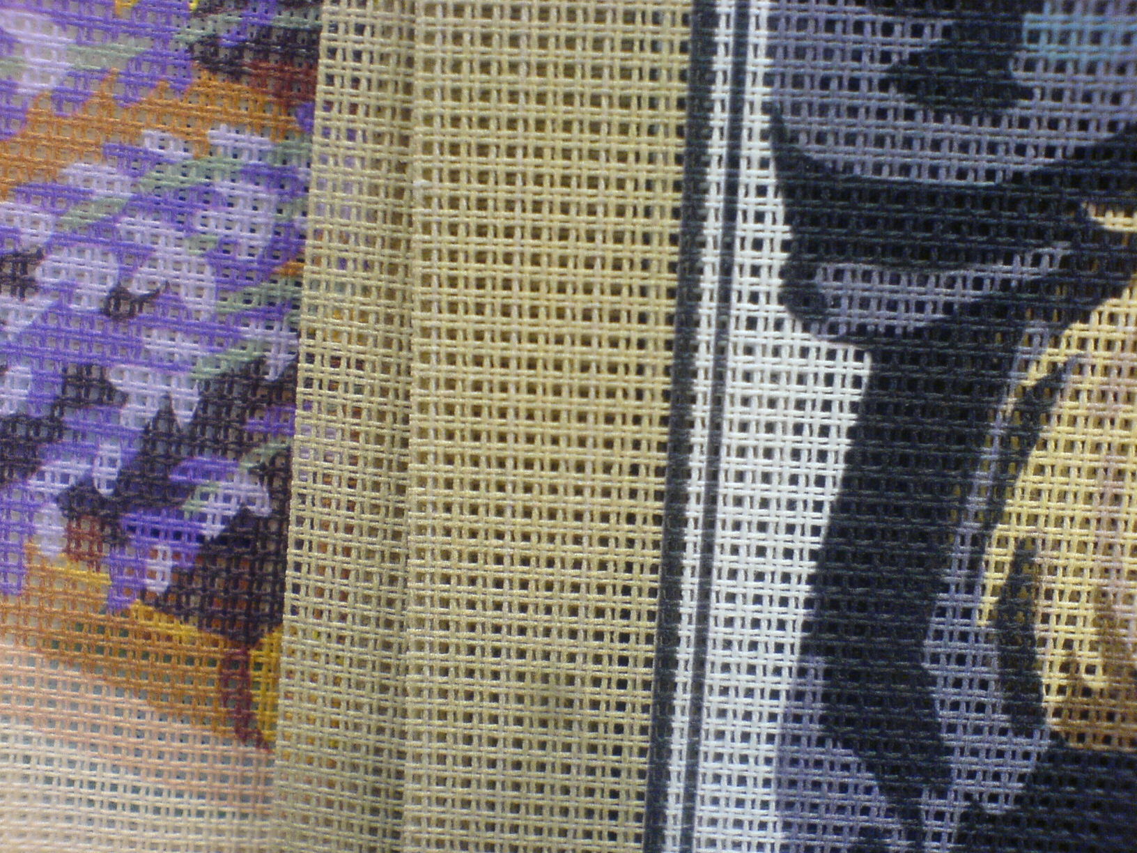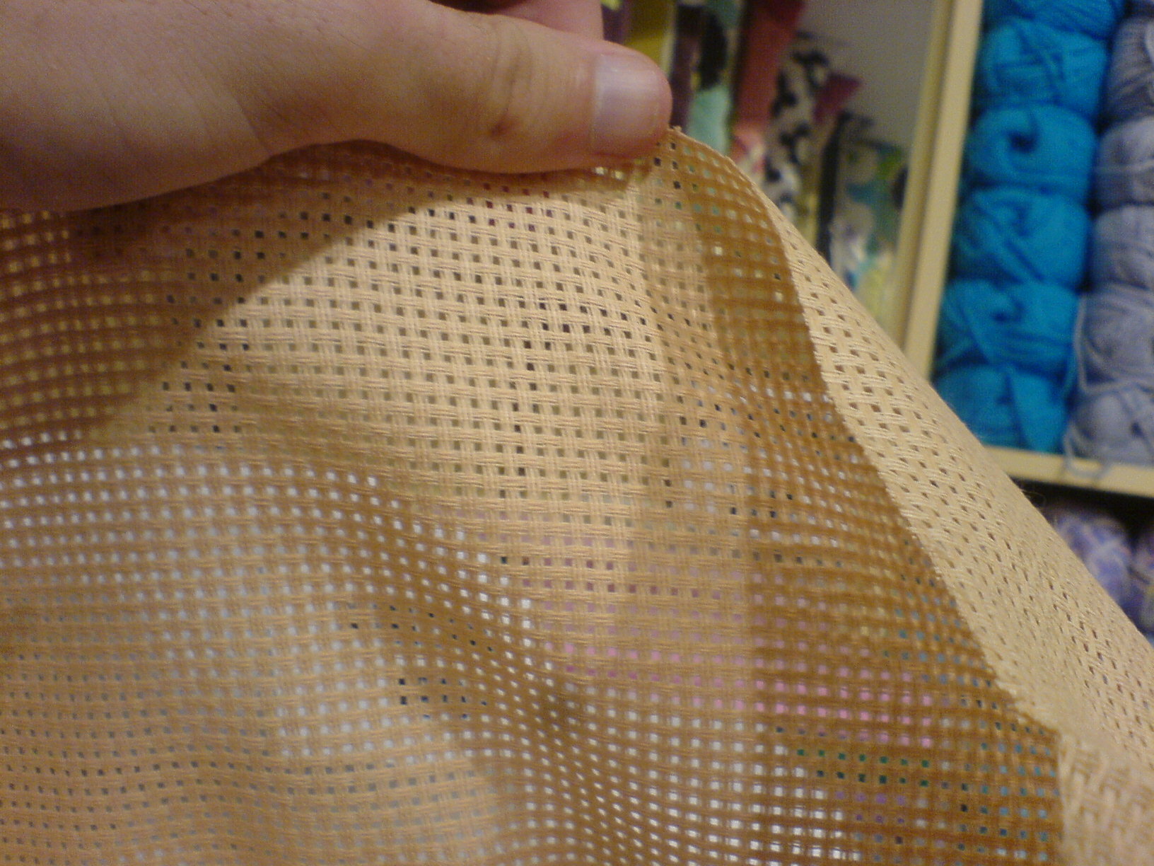 Materiál od firmy Zweigart. Je to bytelná natužená mřížka z bavlny nebo polyesteru, která se používá na vyšívání gobelínů. Zweigart dodává nepřeberné množství hustoty a barev, nicméně v JORIKu v Brně, co jsem se stavoval, pán objednává jen jeden nejprodávanější typ, který je schopen prodat na metráž. Jinak by se muselo objednat v podstatně větším množství.