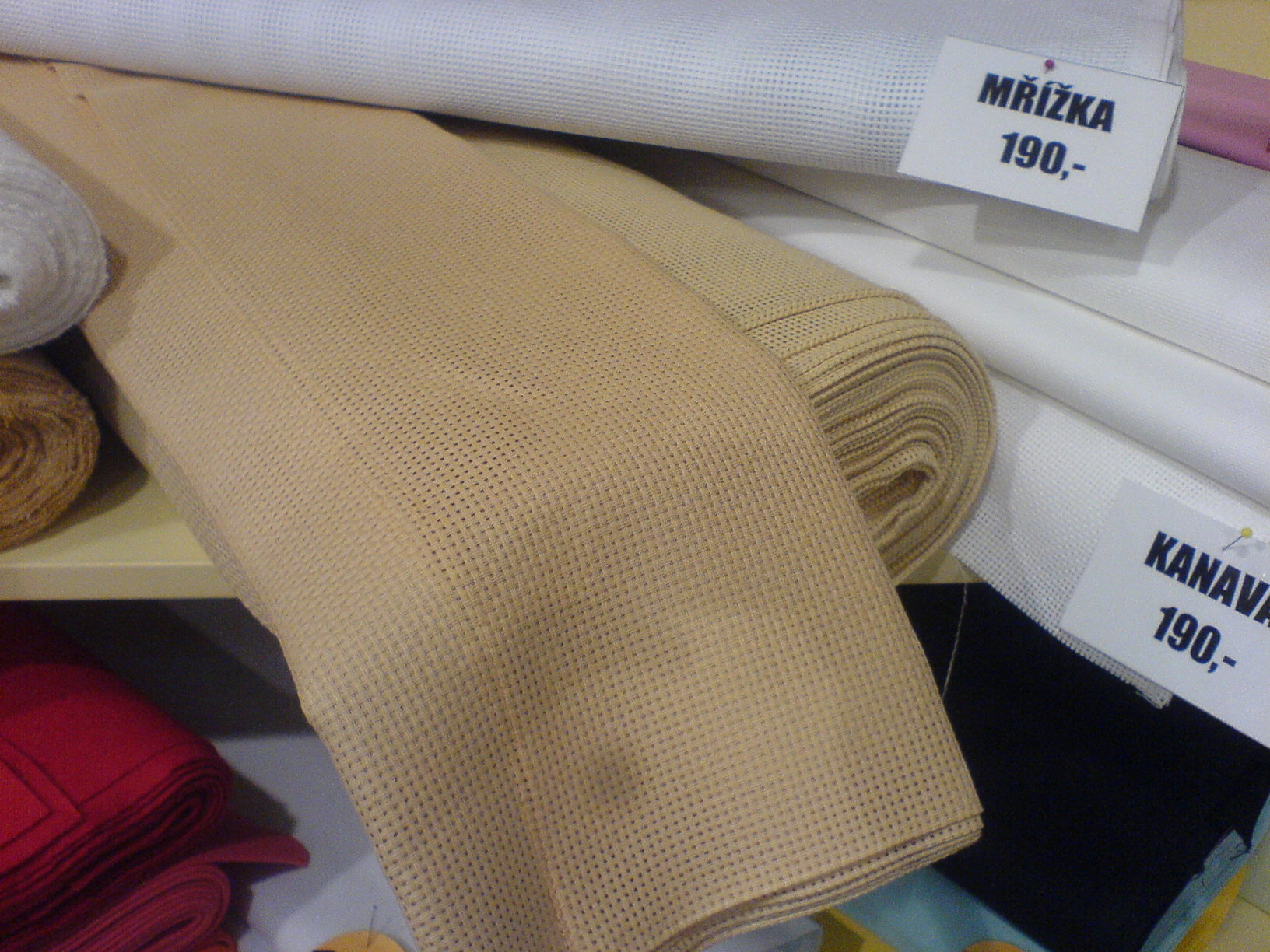 Včera jsem probrázdil docela dost domácích potřeb, textilů a galanterii v Brně. A myslím, že jsem konečně našel "mřížku zaslíbenou". Jedná se vyšívací mřižky typu AIDA, nebo se tomu taky říká kanava. Toto je nezpevněná bavlněná: