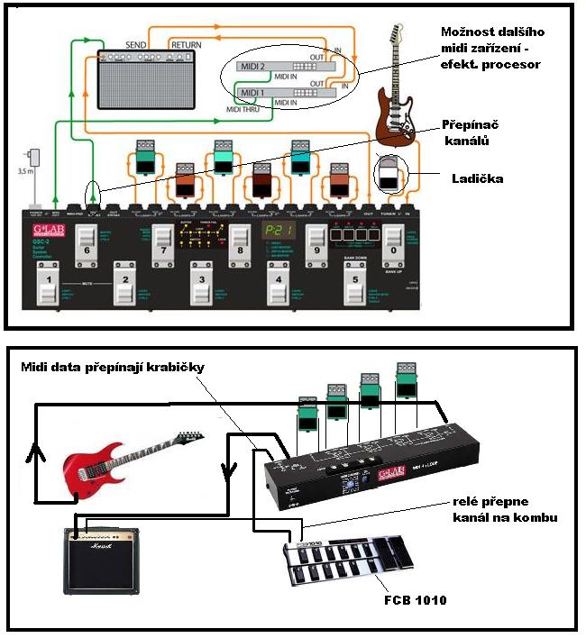 tak jak si je nakonfiguruješ Audio signál. Buď jsou to jen loopery ( spínají FX smyčky kde čekají zapnuté krabičky, nebo Switche které umí přepínat kanály na ( kombu)