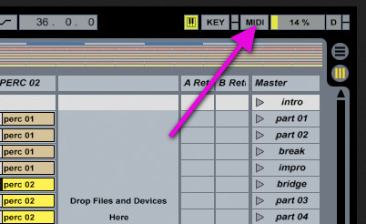 V Abletonu klikni na tlačítko "MIDI" v pravém horním rohu. Tím se to zapne "MIDI map mód" a pak už jenom stačí v Abletonu na něco kliknout a potom udělat něco na looperu (Ableton "sejme" MIDI příkaz a tím tlačítkem/potenciometrem potom ovládáš danou věc/parametr).