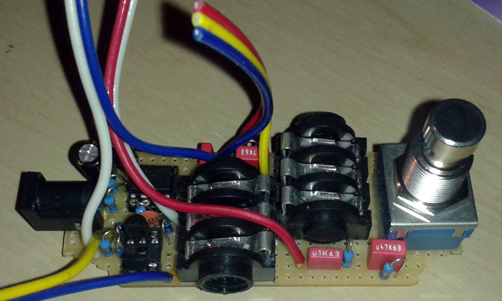 Koupil jsem teda 10mm plastové trimry a myslel jsem, že to celé předělám na novou desku včetně potů napevno. Den na předělání v podstatě funkční krabičky jsem ale obětovat nechtěl takže improvizace, která mi ty 4 mm ušetřila.