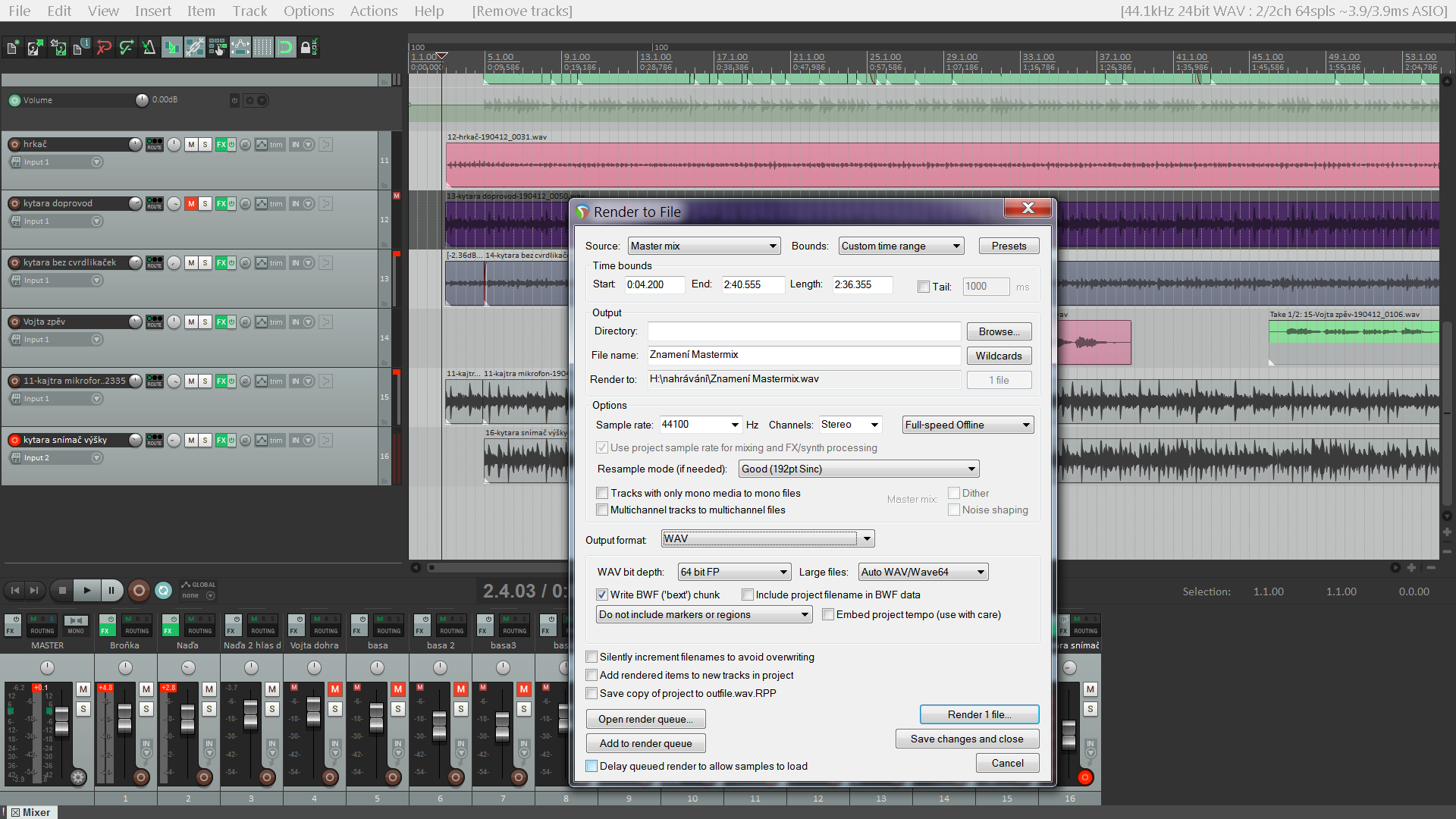 Reaper - Render do formátu wav.