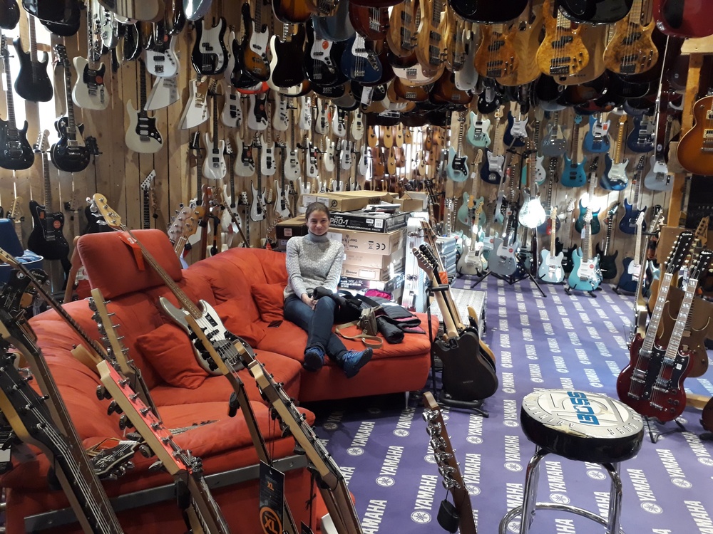 Vypadá nenápadně, ale vevnitř je to obrovské s různými zákoutími a odbočkami. Kromě drtivého množství kytar jsou zde i digitální piana, dechy, smyčce, apod. Obchod na mě působí novým, "nevybaleným" dojmem. Bylo v něm hodně personálu, nicméně nikdo se o mě přehnaně nezajímal. Když jsem se zeptal, jestli mají nějaká pravidla, velmi ochotě se mě ujali a doslova mi nutili, ať si všechno vyzkouším. Volného prostoru moc není, všude jsou nástroje. Je to přeci jen menší, než Thomann, ale ne o moc.