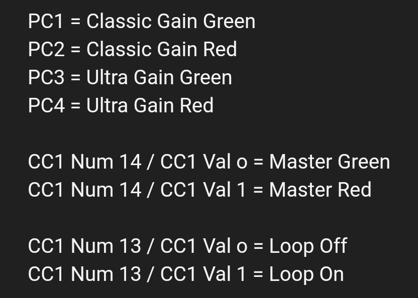 chtěl jsem se zeptat, existuje nějaký způsob na přepínání nastavení gainu na aparátu? Jde to po MIDI? Například nastavím gain na 2 a po sešlápnutí switche bude na 10. Exisuje nějaká možnost?