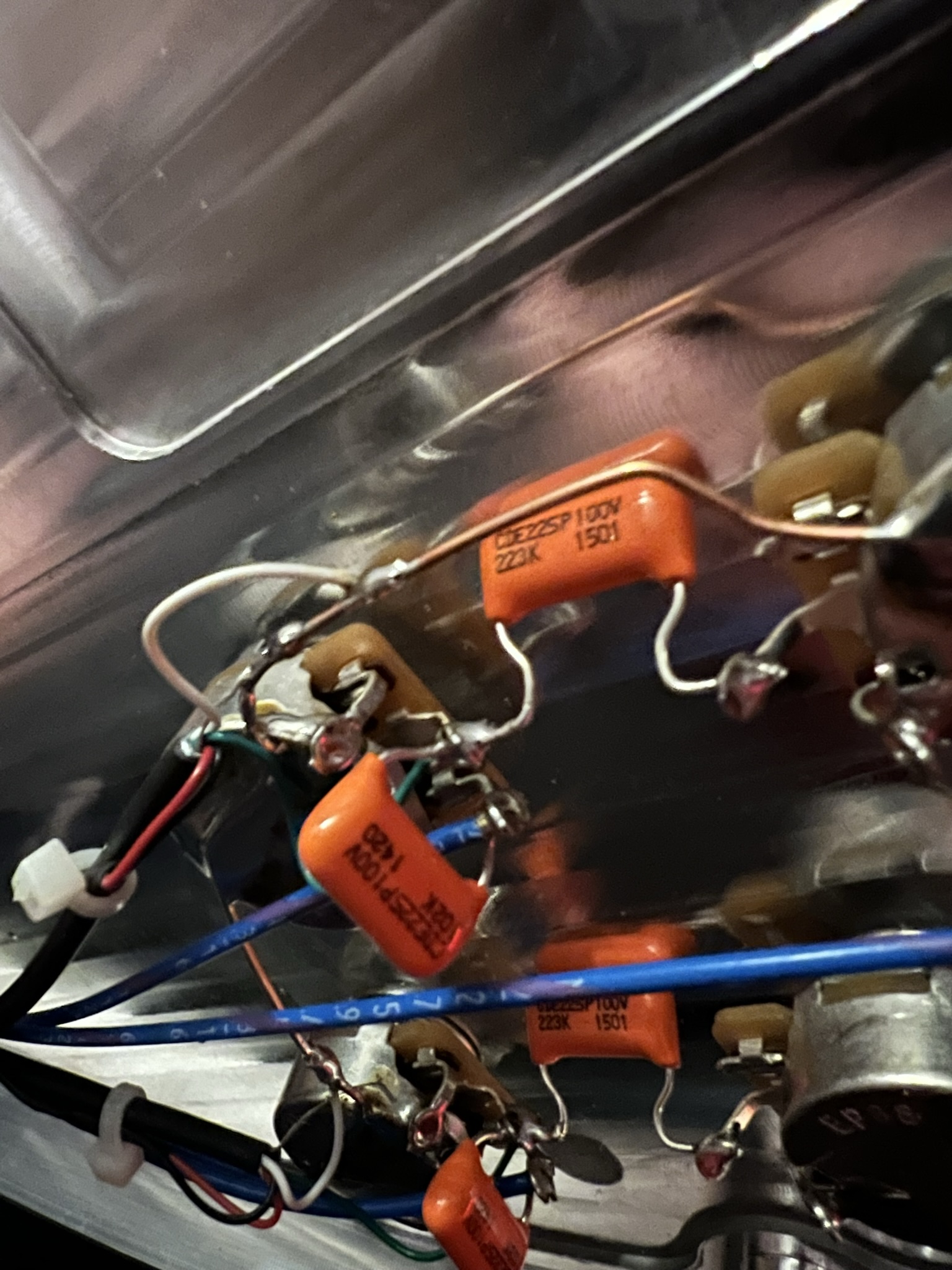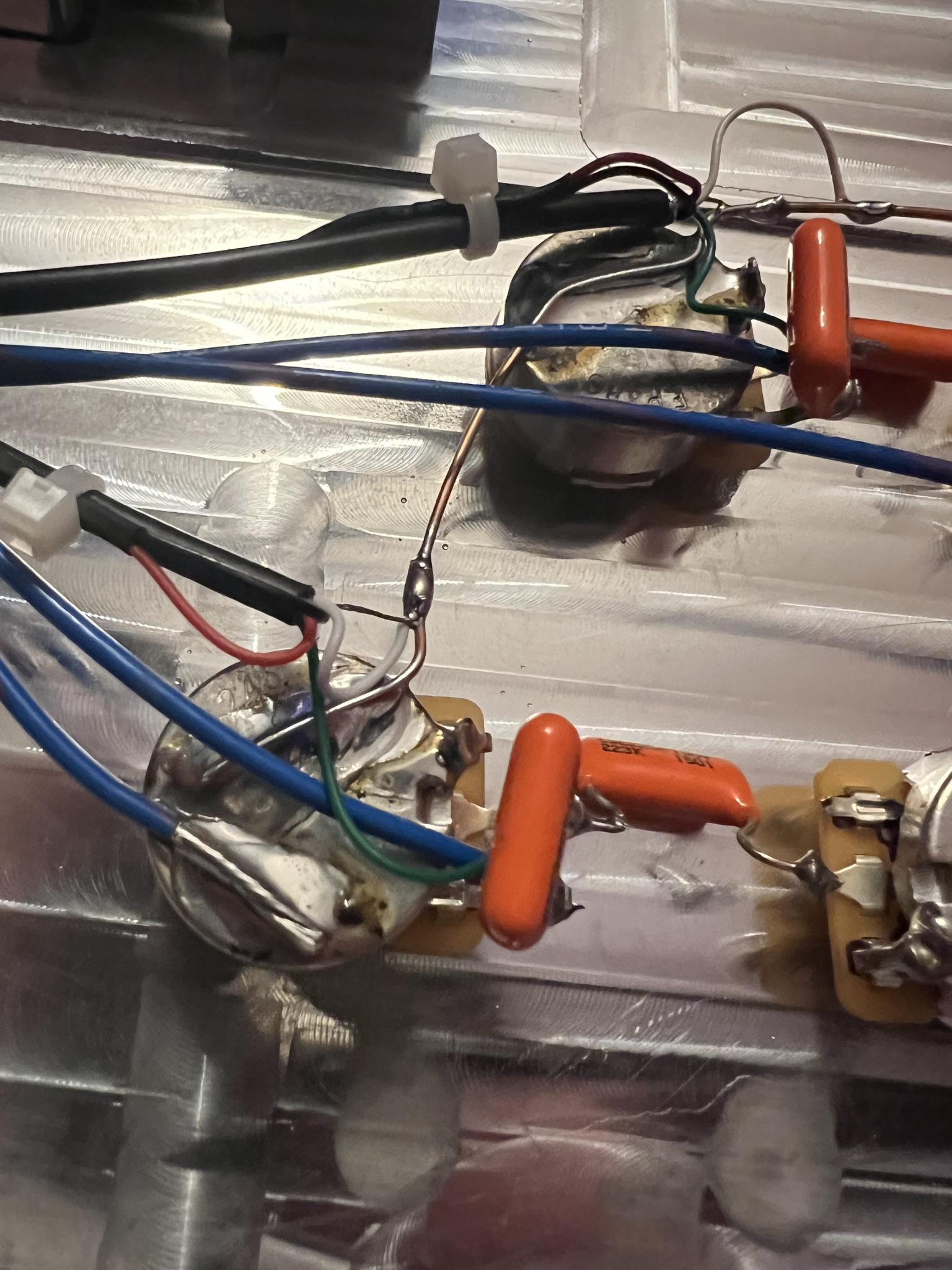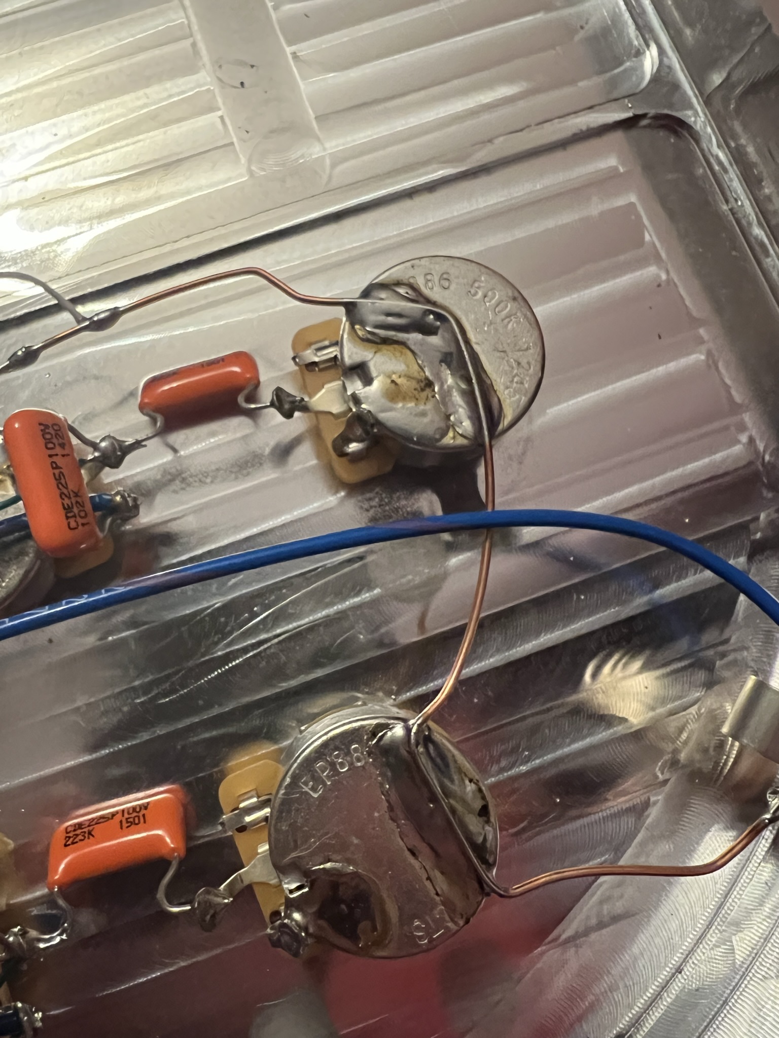 Tohle zapojení mám na více kytarách, takže na 99% vylučuji, že bych něco zkonil.