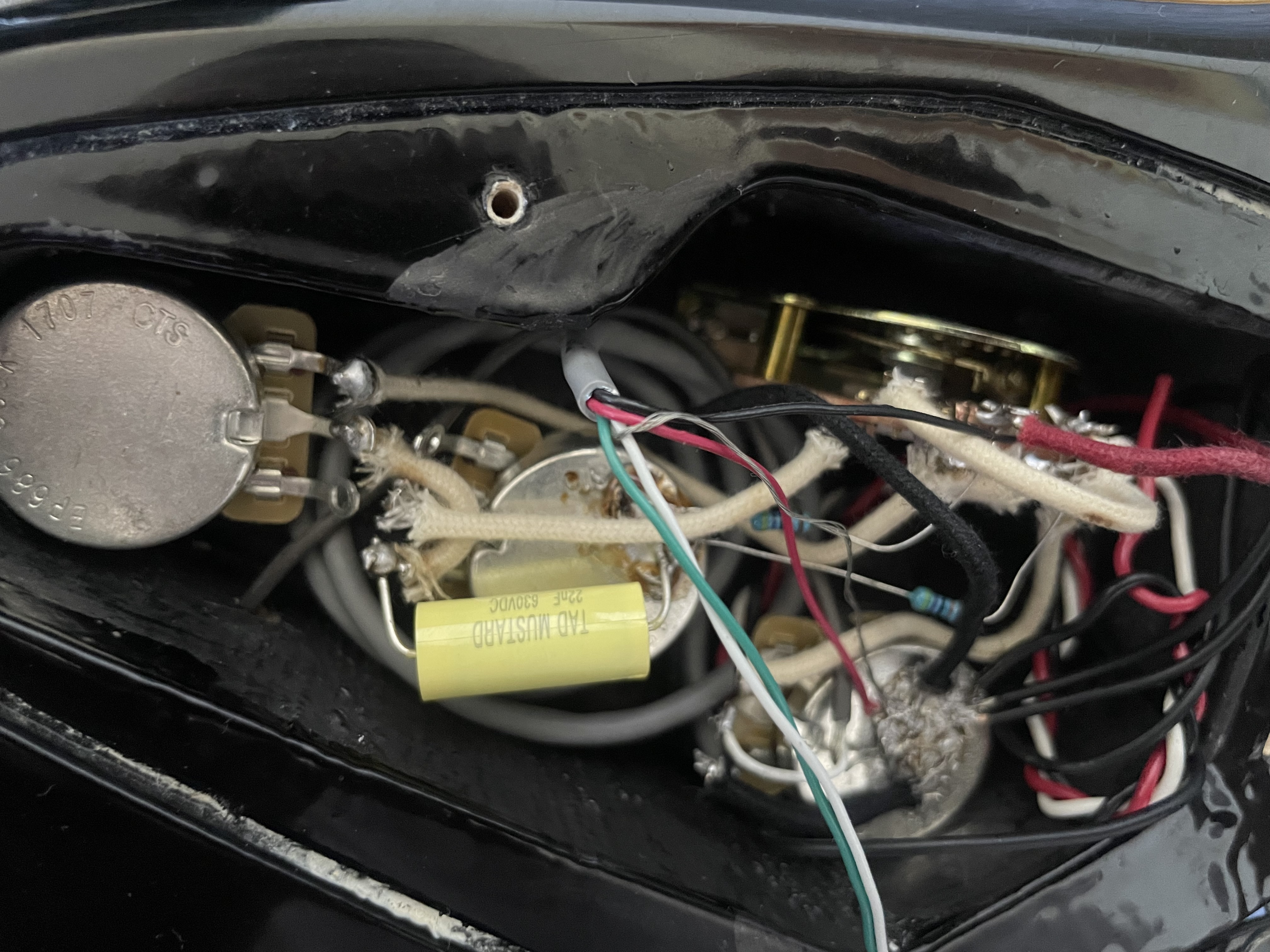 Já tam ten humbucker měl už předtím, než jsem vytrhal celý elektro ven a ten bílý a zelený kabel určitě nebyly použity - jen jsem si nefotil to staré zapojení, protože jsem to chtěl stejně dělat z gruntu celé :/